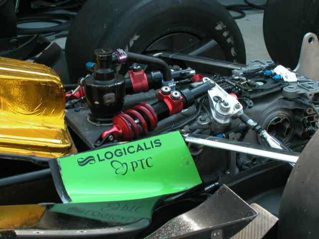 Take a look at the spring. It is really short. The spring on your car is probably at least ten inches tall and in trucks over a foot tall. These are closer to three inches. That is because the suspension travel on the Indy cars is so limited. The track is quite smooth (although at 200 mph it won’t feel so smooth) and the springs need to resist the down force from the wings on the front and the back of the cars. A lot of suspension travel is not helpful.