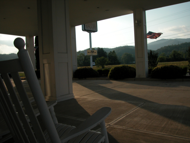 Tomorrow I will head for Alabama, but tonight I will enjoy sitting in a rocking chair at this hotel, reading a book, and from time to time stealing a peek at the view of the mountains.