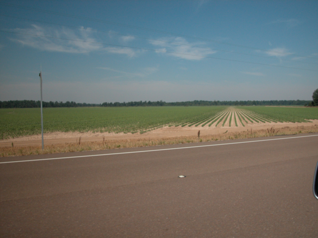 By ten this morning I had crossed over from Mississippi to Arkansas. There is a difference in the scenery I believe. While there were farms in Mississippi, there seemed to be a lot more in Arkansas. I took a few photos of the view from the road.