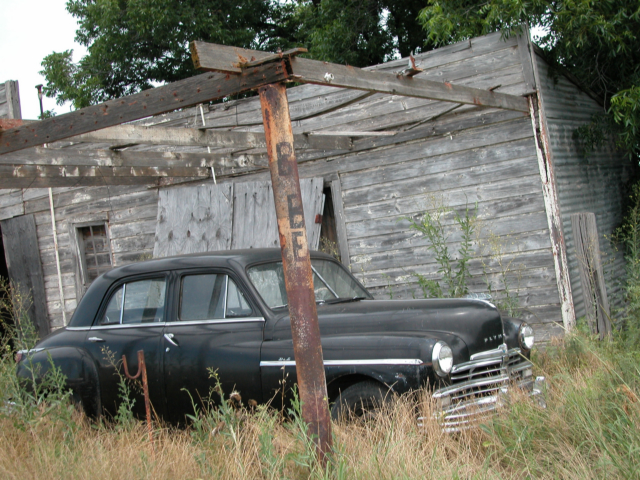 Then I noticed across the road was something equally interesting. It was a black Plymouth just sitting there waiting for a collector to discover it. Being that I was in Texas there was no sign of rust.