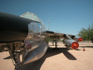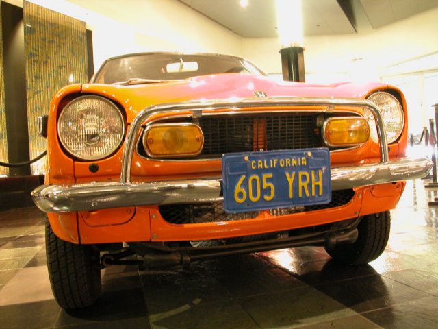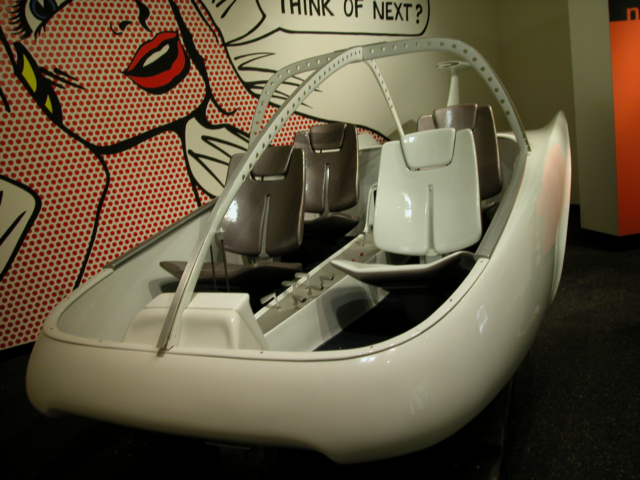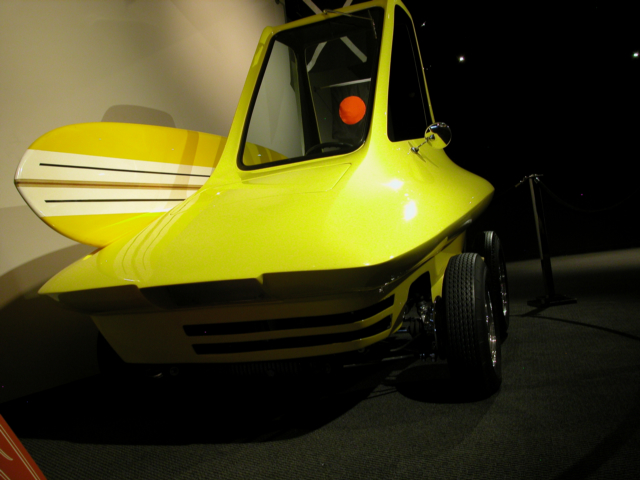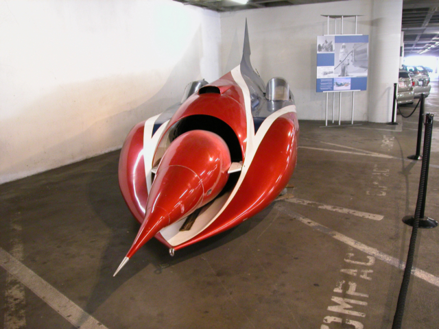 I arrived just a few minutes after it opened and found a parking spot in the garage. That was easy as there was hardly anyone there that early in the morning. Walking to the entrance they have three or four cars in the parking garage itself, roped off, but sitting there in all their glory with a placard full of printed information to read. Art Airfons’ “Green Monster” was there so I had to take a photo of that. Art picked up an engine from a B-58 “Hustler” strategic bomber for about $5000 in 1963. It would produce 15,000 pounds of thrust, but he needed to rebuild it. After fixing it up he built a test platform in his back yard. It worked, but rattled everyone’s windows for a mile around and the exhaust incinerated his chicken coup.Â