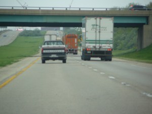 More semi’s were rolling along. The rest areas are full of them in the mornings and many have parked on on-ramps over night as well.
