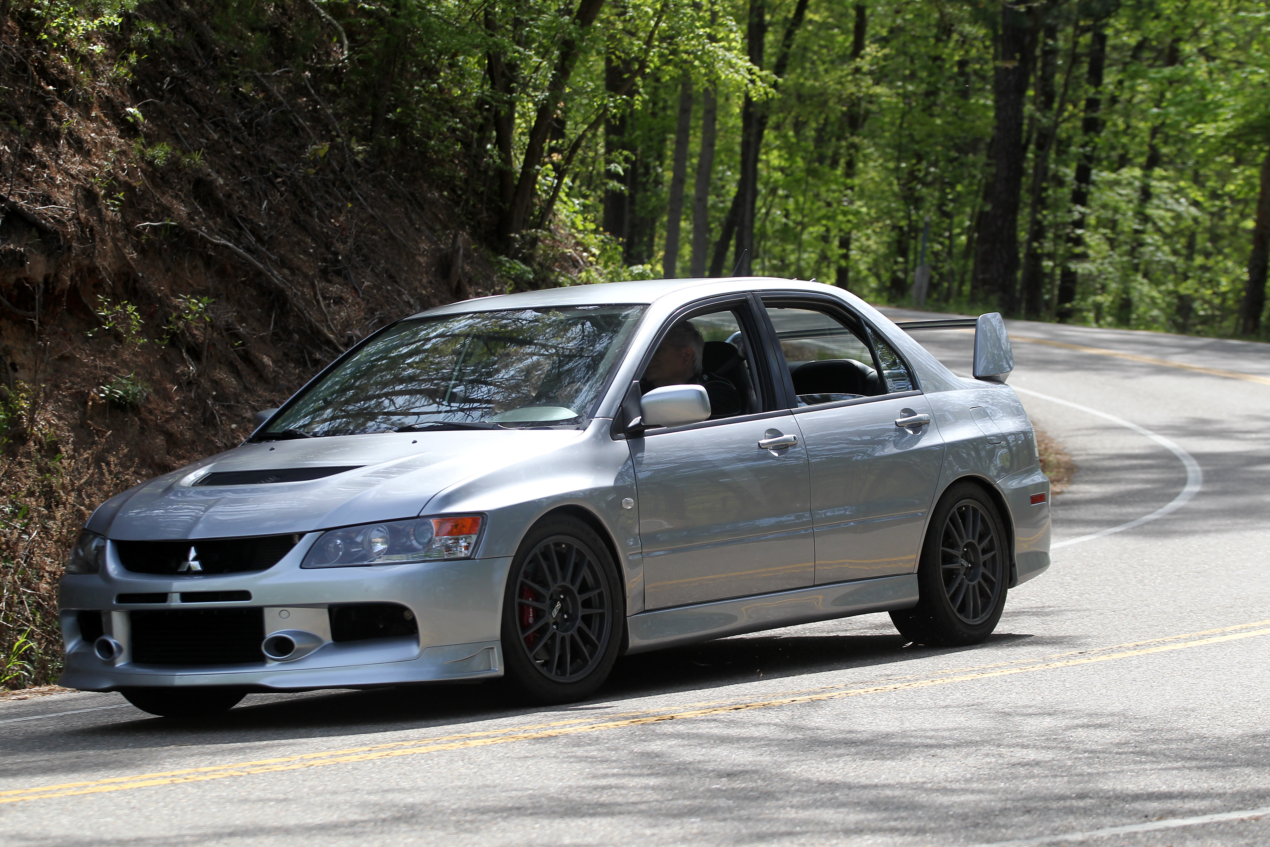 I went back to the trunk to put my single bag of groceries in the netting and the wife of the couple came over and asked me what kind of car I was driving. I explained that it was a Mitsubishi Evolution and was based on a rally car. She was fascinated and had several flattering comments on the car, especially the rear wing. She was surprised to find out that the wing as well as many of the things about the car were not add-ons, but how the factory delivered the car.