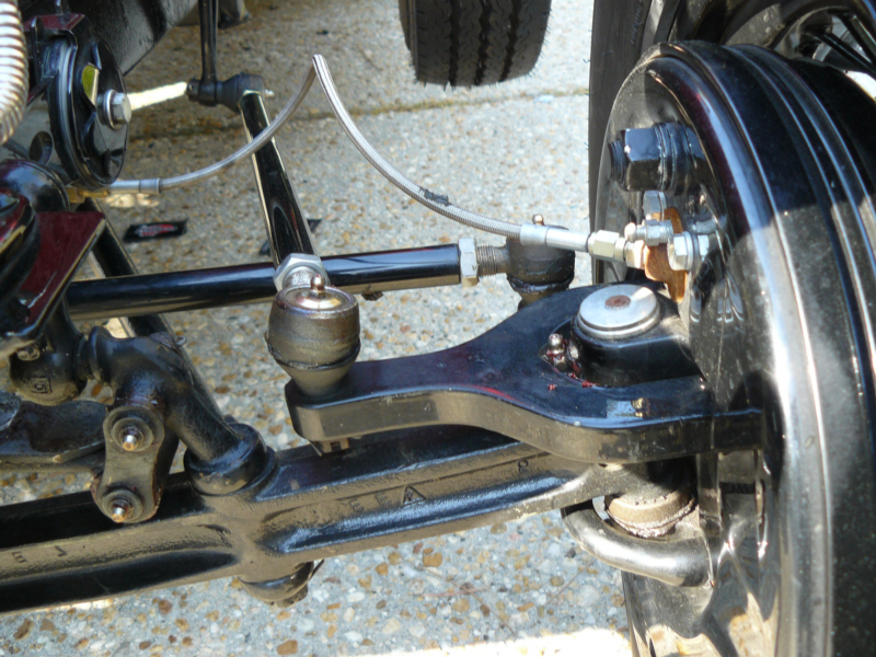 First off Jack had to ditch the ancient king pin and link pin suspension and replace the moving parts of the suspension with modern ball joints and tie rod ends. Next he replaced the mechanical brake system with a hydraulic one. The front friction shocks have been retained, but the rear hides a pair of hydraulic shocks. It has an electric starter and more modern lighting for the road.