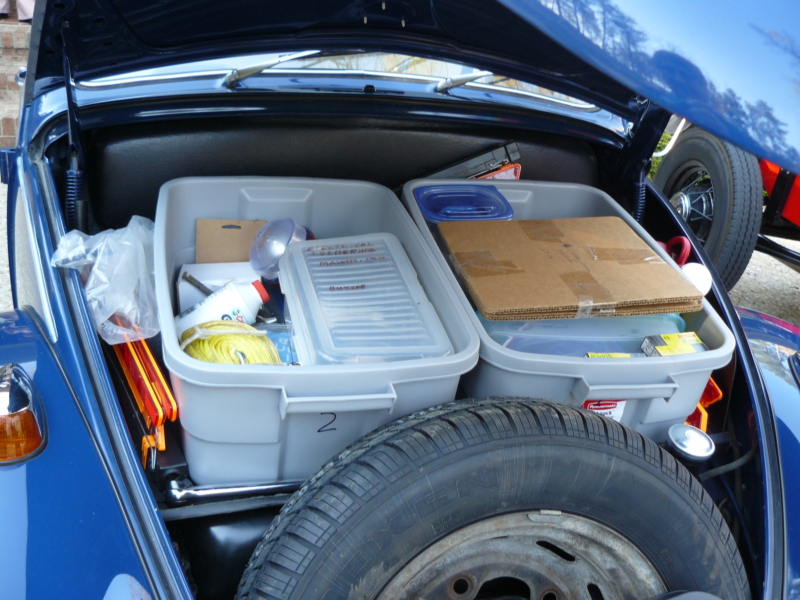 The rear has a custom framework that supports the travel trunk that holds clothes and essentials. Two additional storage containers were still being fabricated but will be installed on the framework on either side of the trunk. They will contain spare parts and fluids.