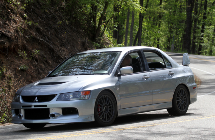 The return run was done with a lower gear and much higher revs. The oil temperature gauge had been about 90 degrees C and was now hitting 100 C. That is about 212 F. The grip was amazing on the two-lane mountain road and with the steep banking I could really power my way around the tight switchbacks. The Evolution’s chassis is very ridged and it would lift the inside rear wheel on the tighter corners. Losing that much traction at one wheel didn’t phase the drive-train one bit as the torque was transferred to the tires that had grip.