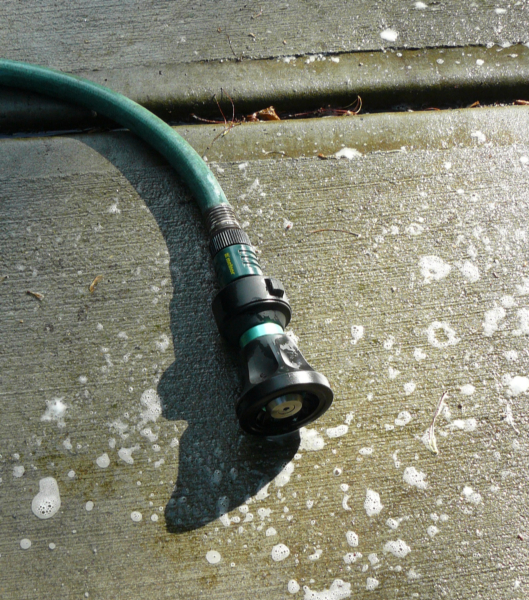 Key to successfully washing your ride is to be prepared. Make sure you have a good long hose and plenty of water. A good hose nozzle can make this job quick and easy. Sure there are the pistol grip types and there are plenty of the multi-spray types that are great for gardening. My latest favorite is a twist type with a large nozzle that allows for a lot of adjustment to the spray pattern.