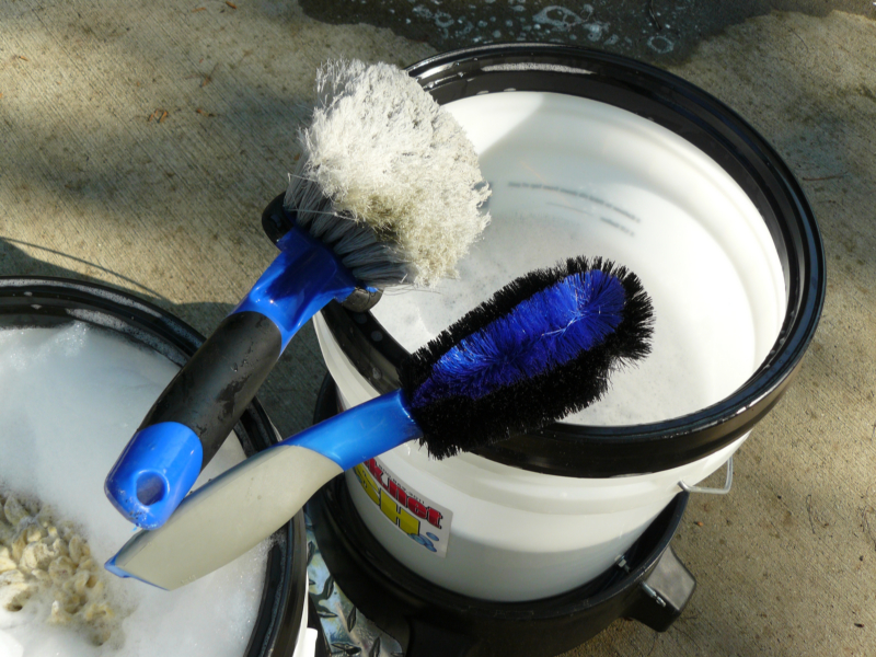 The bucket you use is also important. At one time I used to use a large rectangular wash bucket that held plenty of cleaning solution. Today I use a dual bucket system so that I can rinse the wash mitt in water separate from the soapy water that I wash with. That keeps more of the grit and grime out of the detergent and consequently there is less chance of scratching the paint.
