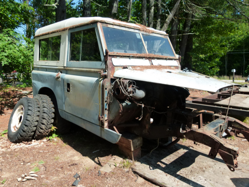 I was intrigued to see a handful of early Land Rovers clustered in front of a service garage so I naturally stopped. The proprietor was Ed Starr who had worked on Land Rovers many years ago and recently was talked into help someone with a “basket case” Land Rover restore it to road worthy condition. Other Land Rover owners contacted him to help with their vehicles and Ed made the leap from hobbyist to a business person by leasing the garage he was working out of. He is one of two folks in New England known to specialize in early Land Rovers and gets his customers by word of mouth. While I was there at least four cars stopped to see the cars he had out front and inquire as to the services he offered.