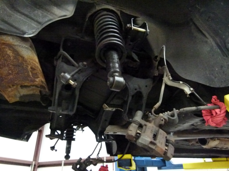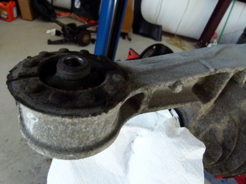 Most of the rear suspension had to be removed to get the rear differential out. That was fine since all the bushings were going to be pressed out and replaced with Energy bushings. All the eccentric alignment bolts are being replaced with new so they were unbolted and removed.