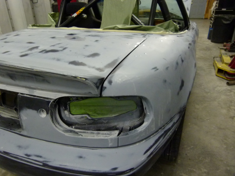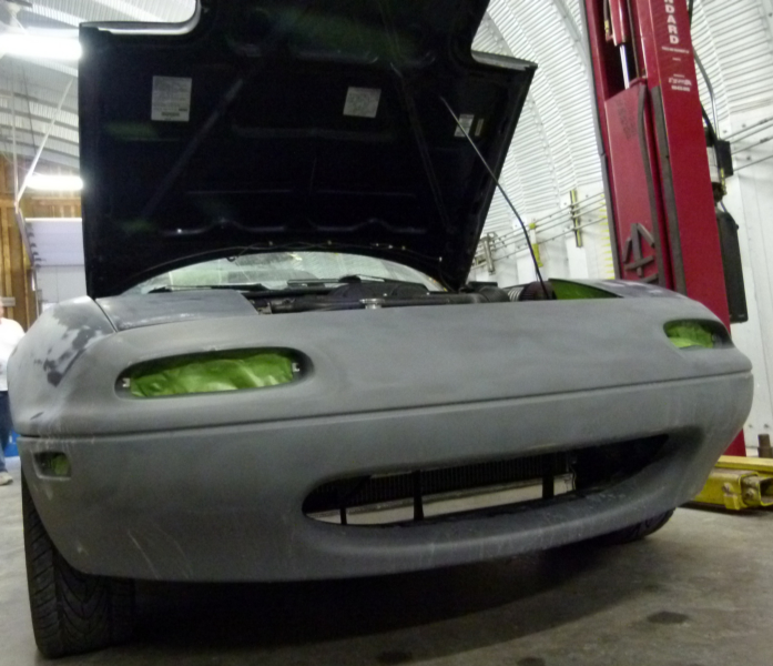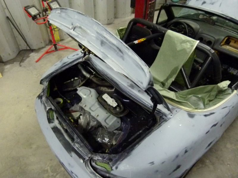 So it is on to a “real” automotive paint that Phil has ordered that will still be a satin black. In the mean time he has done a lot to prepare the body surface for shooting.