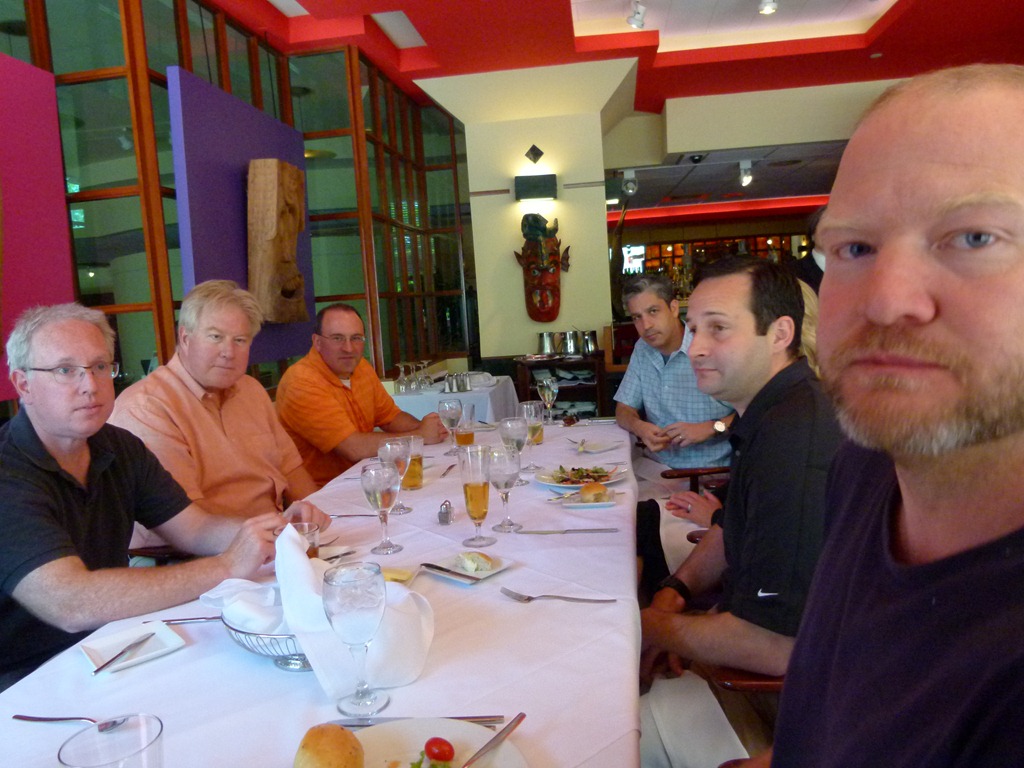 At another table is Nick from PA, Dave from MI, Tim – also from MI, and Jeff – also from PA. That’s Bryan Johnson from ZF who has provided a large part of the sponsorship with Autoweek to make this Fantasy Camp possible. On the right is Tommy Kendall. He has had a career as a professional racing driver with a fantastic record of championships. He followed that up with a TV career as a host and analyst.