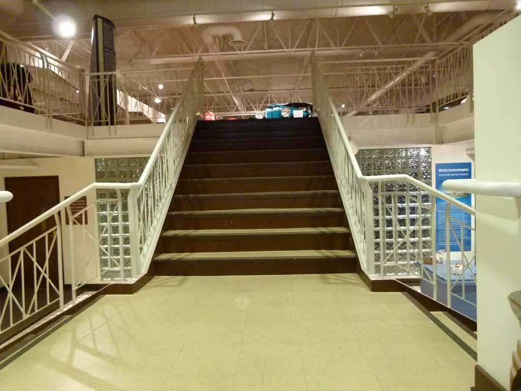 The museum has a beautiful staircase that leads to a second floor of exhibits. The staircase itself is a piece of art: