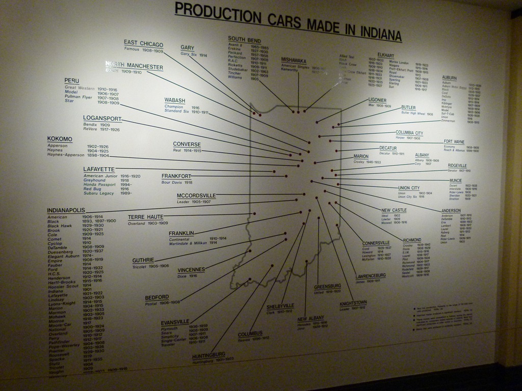 Hundreds of automobile manufacturers have called Indiana home for their factories. The great Indianapolis Motor Speedway was created originally as a test track to support the many car manufacturers. While Michigan is often thought of as the heart of the American automobile industry Indiana just might be the original center.