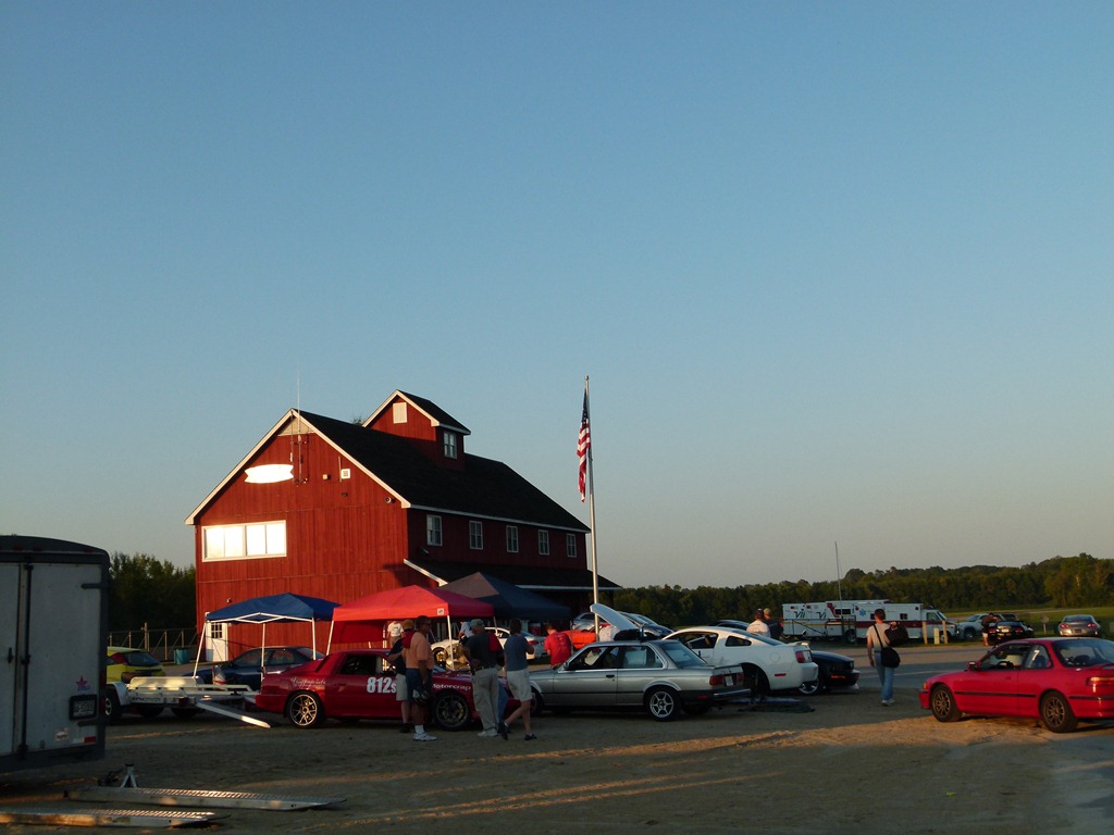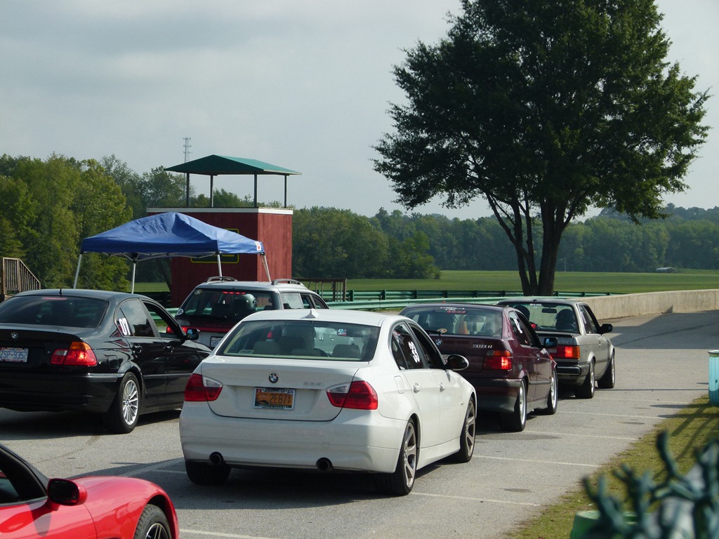 I arrived at six, just as the gates opened and followed a long line of fellow HPDE enthusiasts in to the pit area where we parked and unloaded. For me it was not a lengthy procedure since I simply drove my track car to the place. I had to empty out my trunk and get such things as the spare tire, the jack, etc. All such things must be out of the vehicle prior to going on track. Loose objects such as floor mats also must be removed.