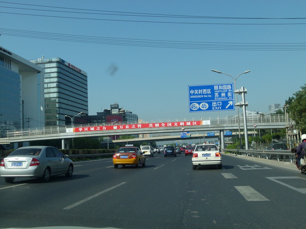 There are many cars that go in and out of Beijing during the work week and the government has instituted a policy to reduce the numbers in the hope of reducing congestion and the levels of exhaust emissions. So the last digit of your license plate will determine if you can enter the city or not. On one day the 0 and 5 plates are blocked from entering, the next day 1 and 6, then 2 and 7, 3 and 8, finally 4 and 9. In theory that removes about 20% of the potential traffic from inside the forth ring. The only exception are taxis and government vehicles.