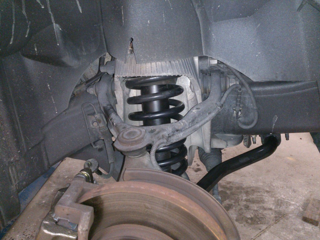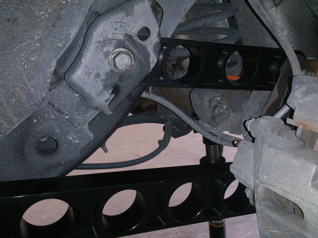 The sway bars were also removed and then the axle was pried down to swap out the rear springs.