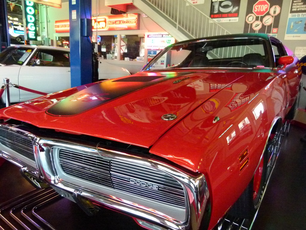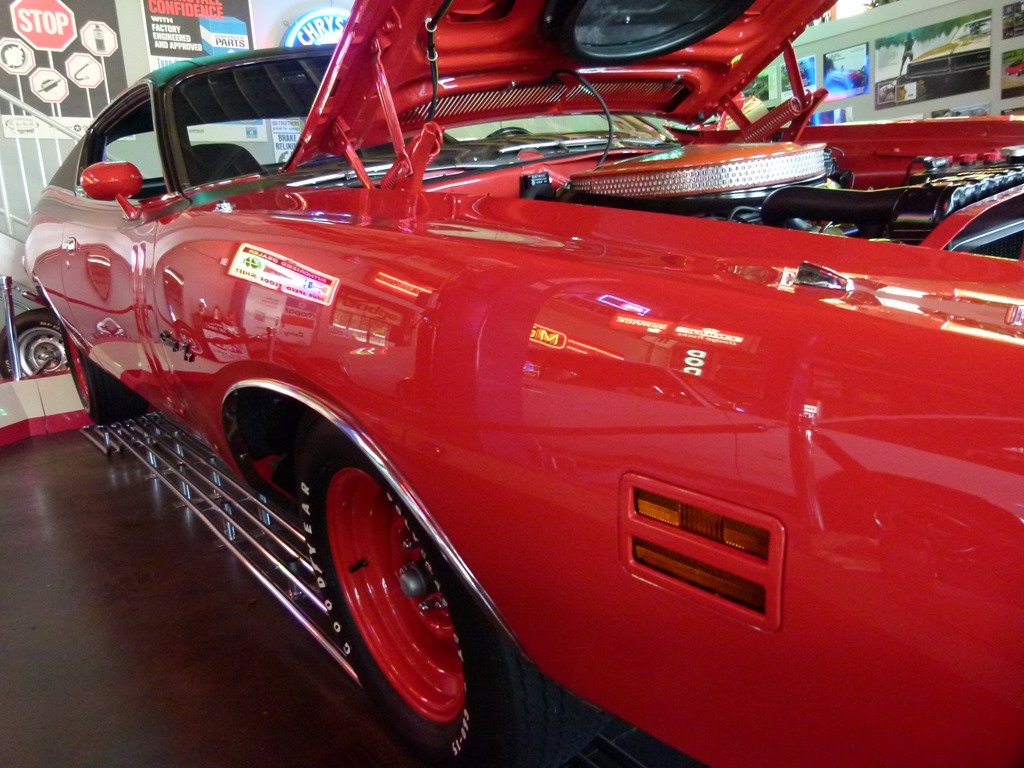 In the VIP spot was a special “pilot” version of the first hemi Charger built in 1971. It was a beautiful red and displayed up on a chrome pedestal. A pilot version of a model car was basically assembled by hand so that the actual assembly line process can be perfected. Typically these pilot cars are then scrapped and never sold. So this is an exceptional find and a real gem for this museum. They also have the last production 1971 Charger built in their collection.