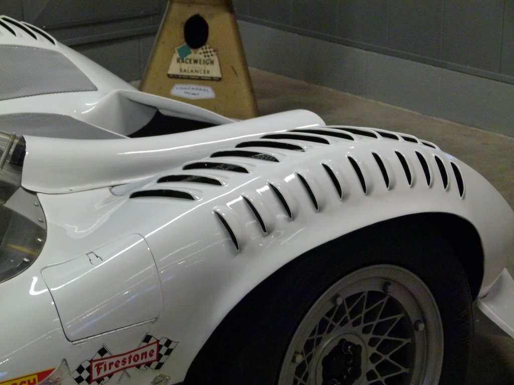 Notice the venting around the wheels. The spinning wheels and arches are still the most tricky areas of unwanted high pressure areas for aerodynamicists to deal with. The wing on the rear was to add high pressure over the rear tires while the front was meant to capture the air and produce high pressure on the front as well.