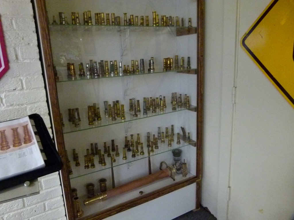 But first a couple of cabinets with a rather eclectic collection of brass hose nozzles. Hmmm.