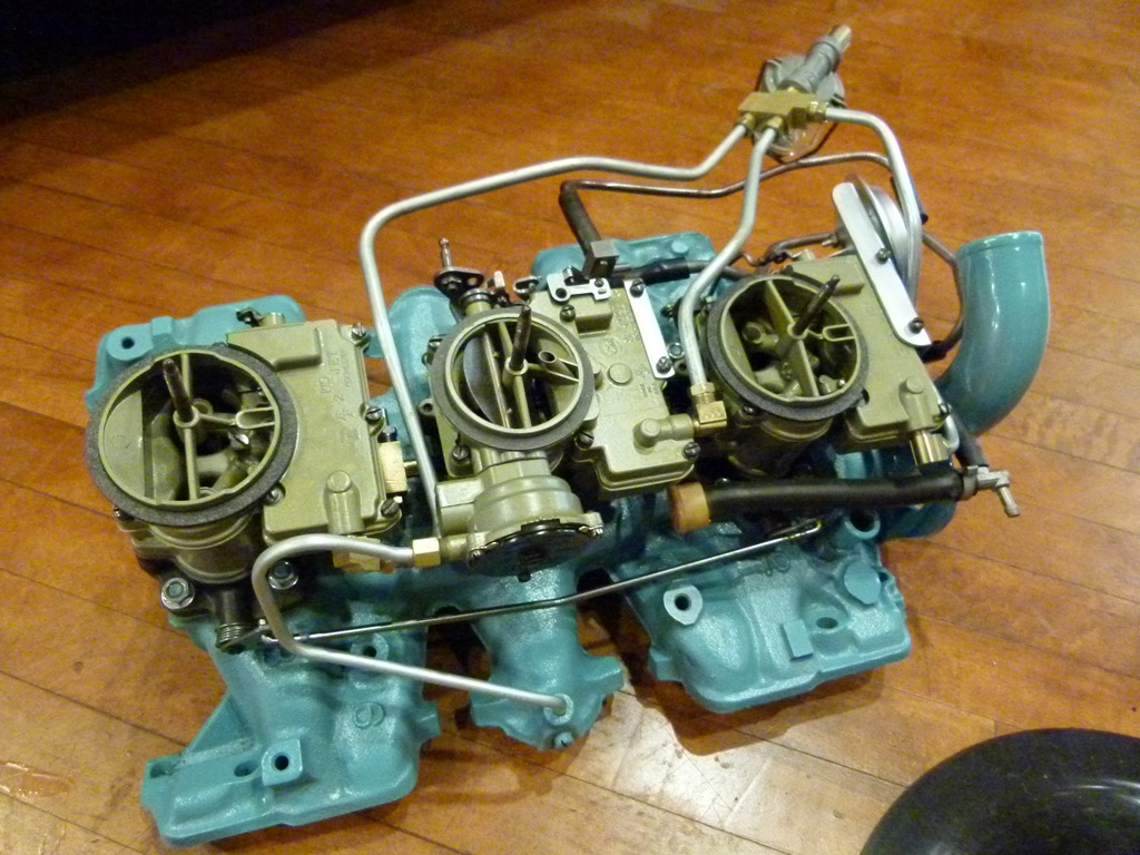 Pontiac often used their Tri-Power option in their muscle cars. Three, two-barreled Rochester carbs. The center one did all the duty to feed the engine until you punched the accelerator. Then all the carbs opened up feeding monster power.