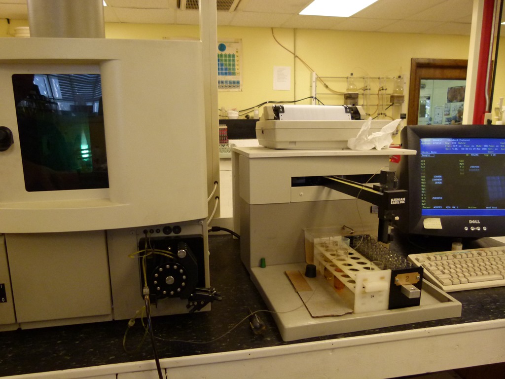 The samples are put through a spectrometer where parts per million of various elements is determined.