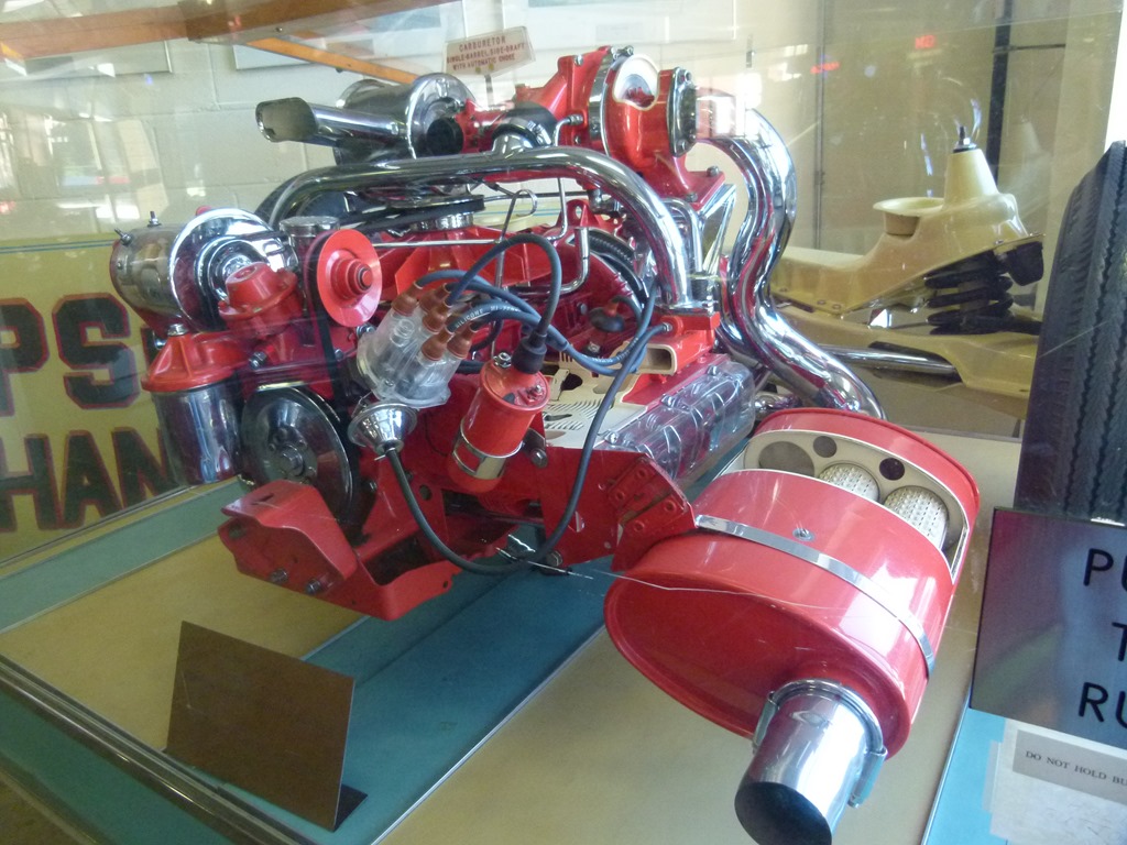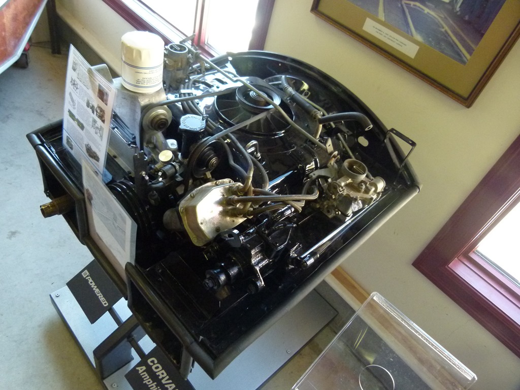 The engine above was a turbo-charged Corvair motor. The Corvair engines were six cylinder and horizontally opposed. That is three cylinders opposite each other. Some people call it a boxer engine. The only other company to build such engines would be Porsche.