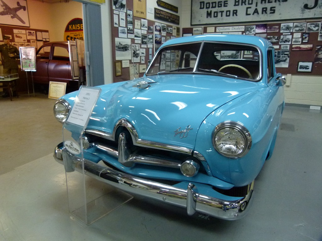 Henry J. Kaiser and Joseph W. Frazer purchased the former willow Run B-24 bomber factory and in 1946 started production of their cars. Kaiser was the guy who turned production of the WW II Liberty ships into an assembly-line production so that we could build freighters faster than the Germans could sink them. They were welded instead of riveted, which was a first. The first ones took about 240 days to build but over time that was cut down to 42 days. One was launched four days and 15 and a half hours after its keel was laid.