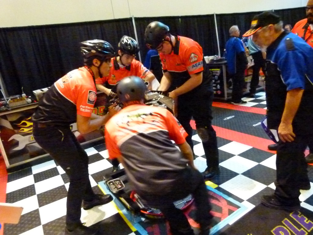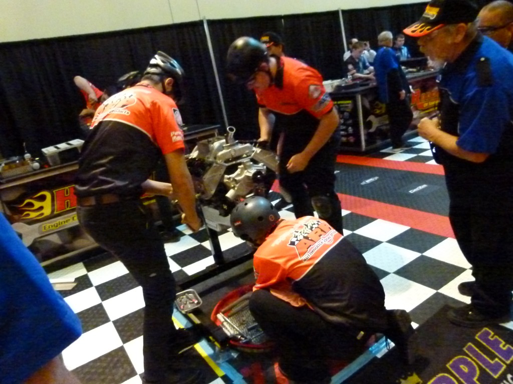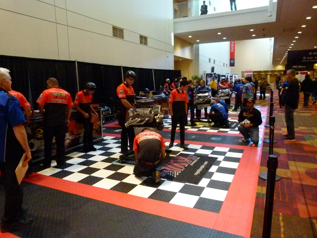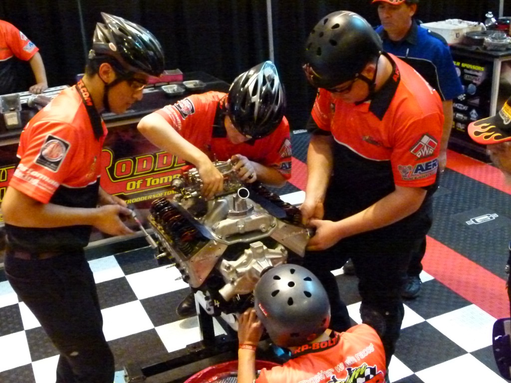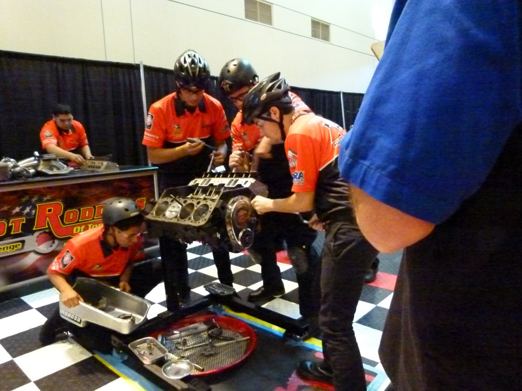 Speaking of competition, there was a new event at PRI this year. Hot Rodders Of Tomorrow are holding the final round of the engine building contest that started last week at SEMA. This features the top high school students from around the country as they compete to tear down and rebuild a Chevy 350 in the shortest time while being judged on the quality of their work. I was able to watch as three teams competed today.