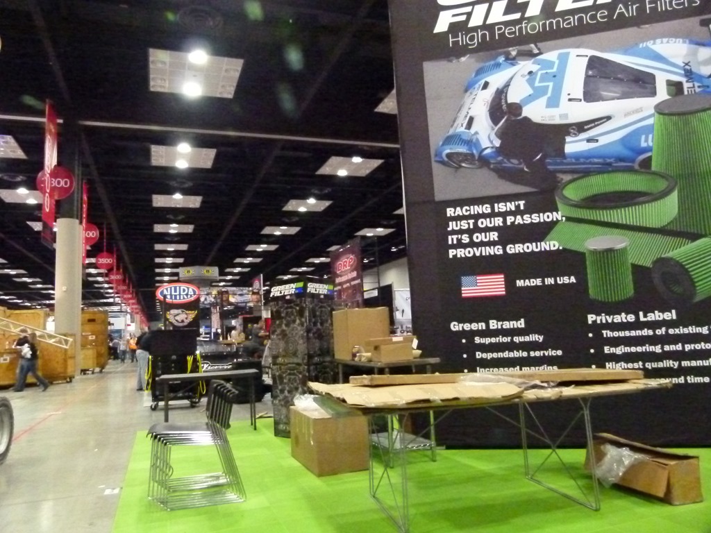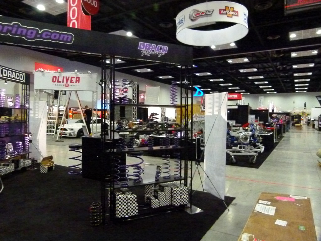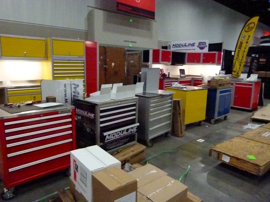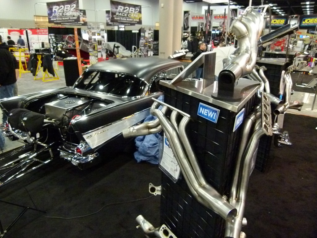 I also had some favorite vendors to check out and one of them is Stainless Works. If you remember, they made the headers and exhaust system on my P71 road trip car. I caught them in the midst of setting up their booth and they were busy working out the best arrangement of their products.