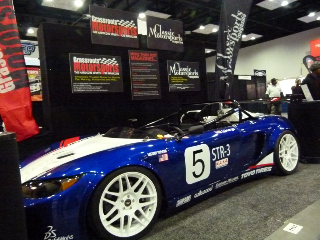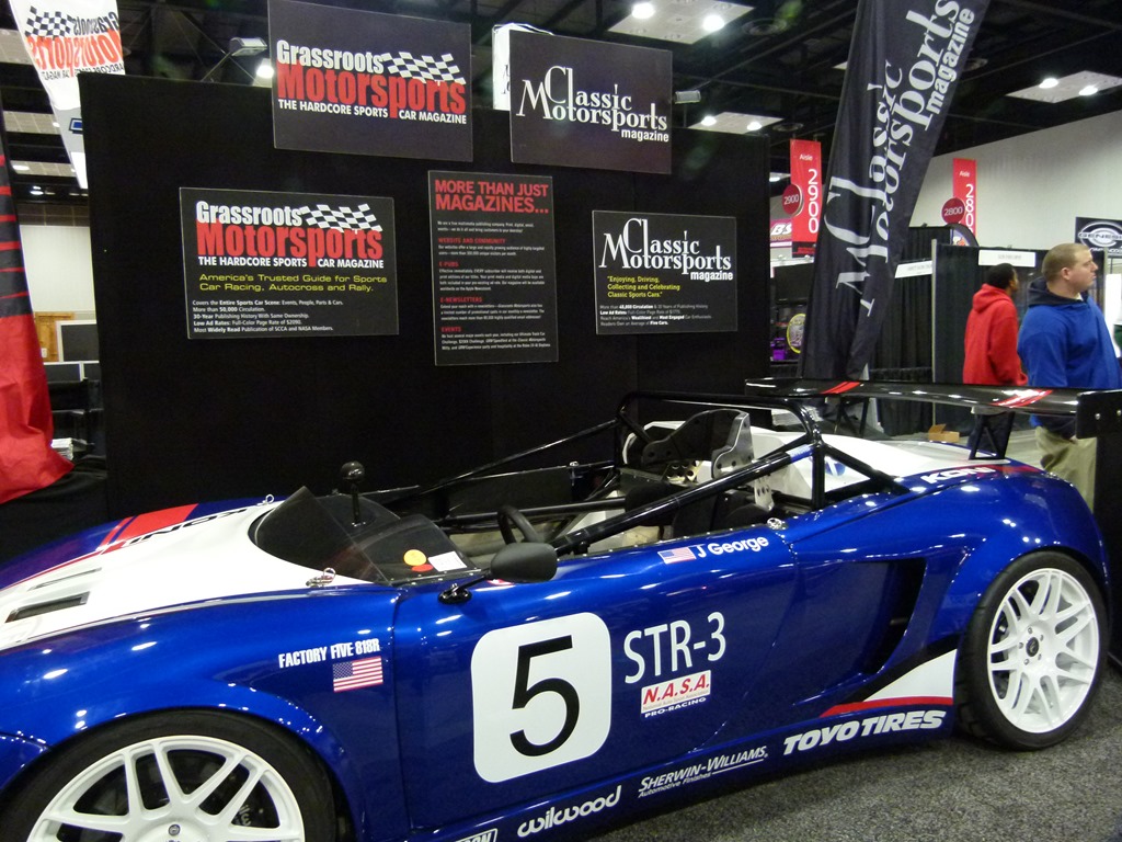 Grassroots Motorsports and Classic Motorsports magazines have a Factory Five 818 track car on display.