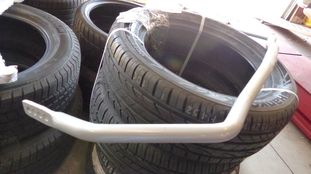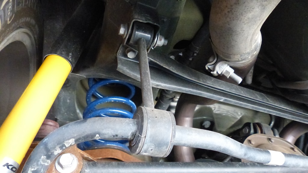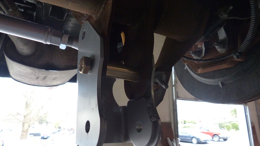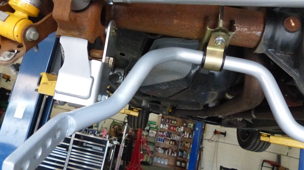 The old bar is hung from two links to the chassis and the ends connect just under the shock mounts. The new bar will be pretty much the reverse with the bar mounted to the rear axle and the end links connected to the chassis with new adjustable end links.