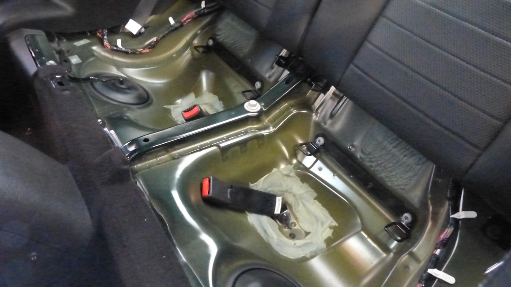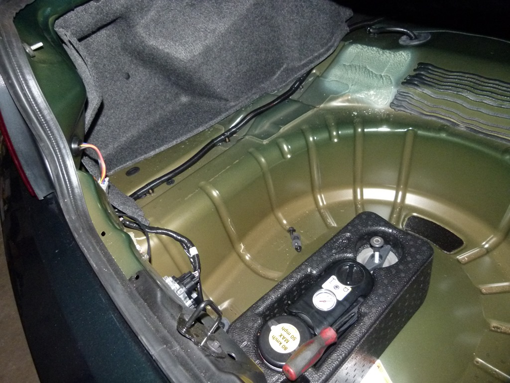 To get to the rear shocks required the removal of the sub-woofer assembly in the trunk.