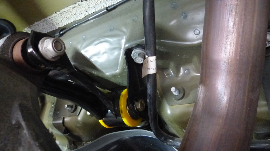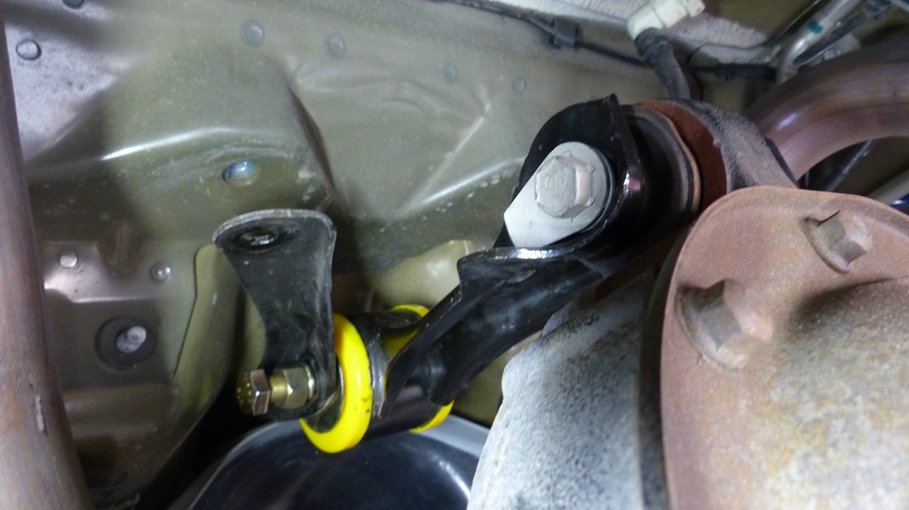 Just like the front bar, the end links were set to the second hole from the end of the adjustable rear bar. The hole closest to the end will provide the least roll resistance and the one farthest away provides the greatest stiffness.