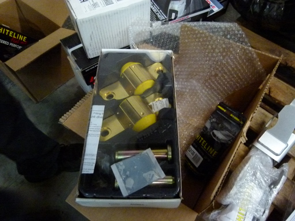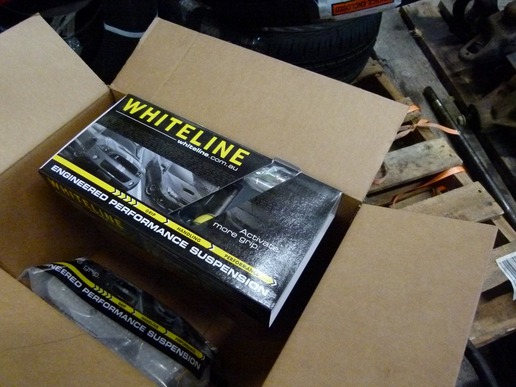 The Whiteline kit has new bushings as well as an offset spacer that allows you to increase the caster or inclined angle of the control arm.