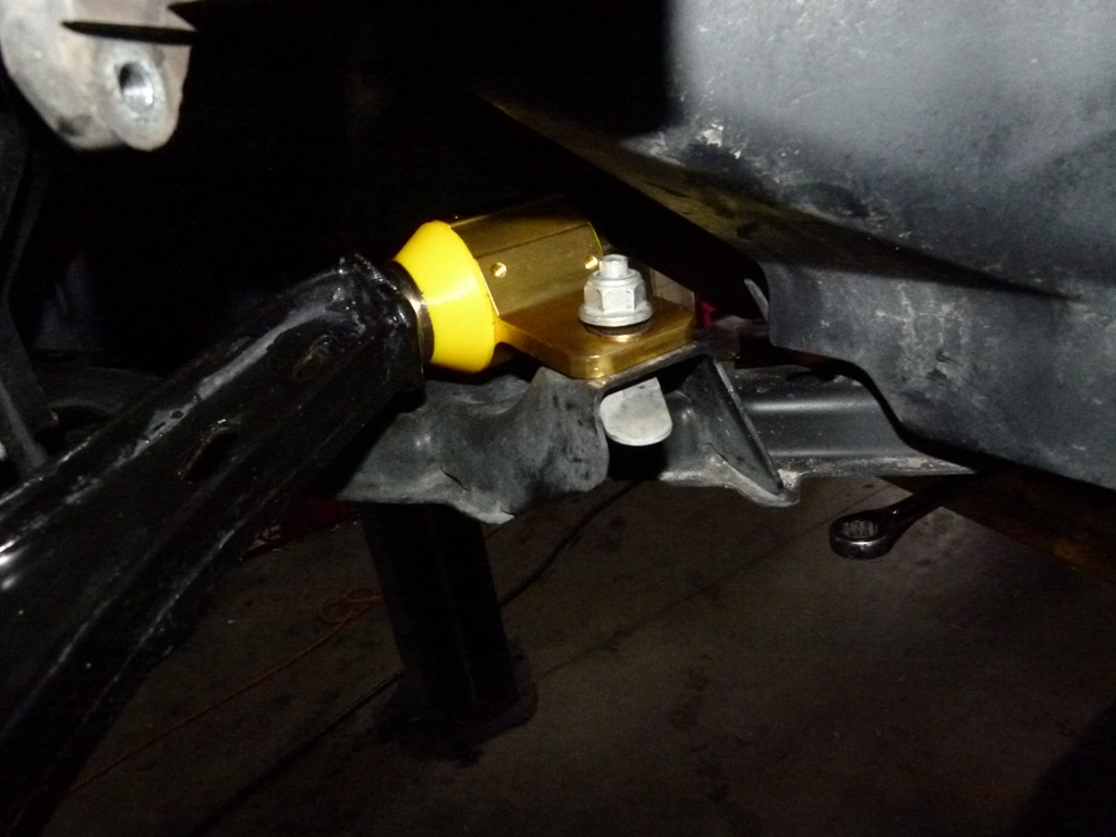 Then the new brackets were slipped into place. With supplied bushings and bolts they were aligned so that the new control arms could be bolted up.