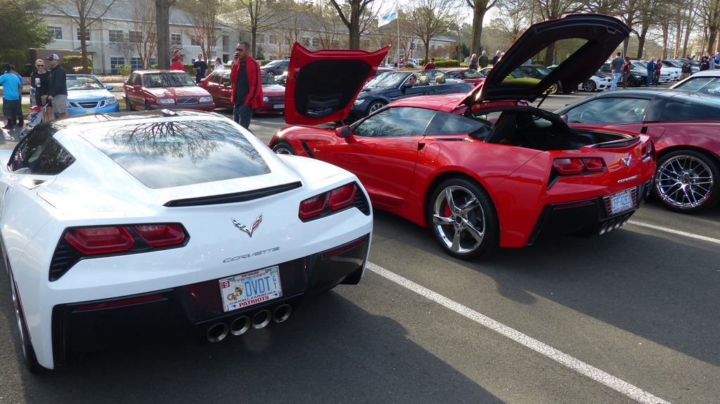 With weather in the seventies and the sun shining down this is the first Cars & Coffee of spring. While dedicated car lovers have been coming out the first Saturday of each month prior to this, now the weather has become friendly enough for throngs of people to congregate to admire the automobile.