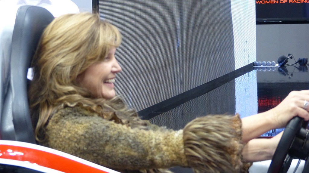 Of course you don’t have to be a celebrity to be noticed. There are always the people having the time of their lives, like this lady at an Iracing simulator that Indy had set up.