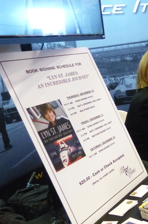 Lynn St. James later put in an appearance at the Sportscar Vintage Racing Booth.