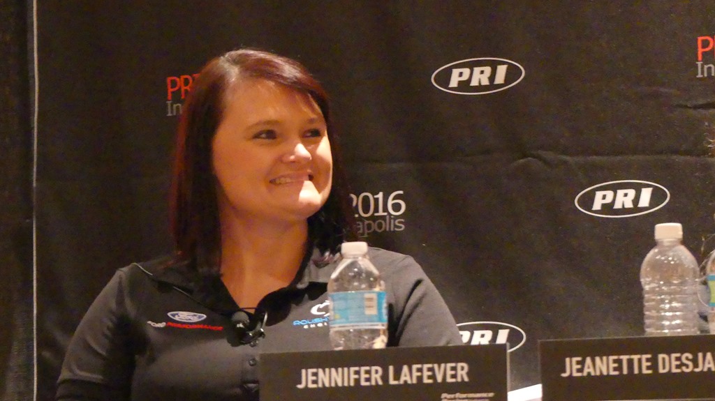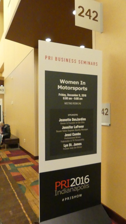 This seminar featured several women that have found out how to live their dream in the motorsports world. Lyn St.James, former Indycar driver and the 1992 Indy 500 rookie of the year was there, along with Jessi Combs – a professional driver and well known fabricator and television personality. Jennifer LaFever, RoushYates engines quality assurance manager, along with Jeanette DesJardins who founded Car Chix and Crank It Media.