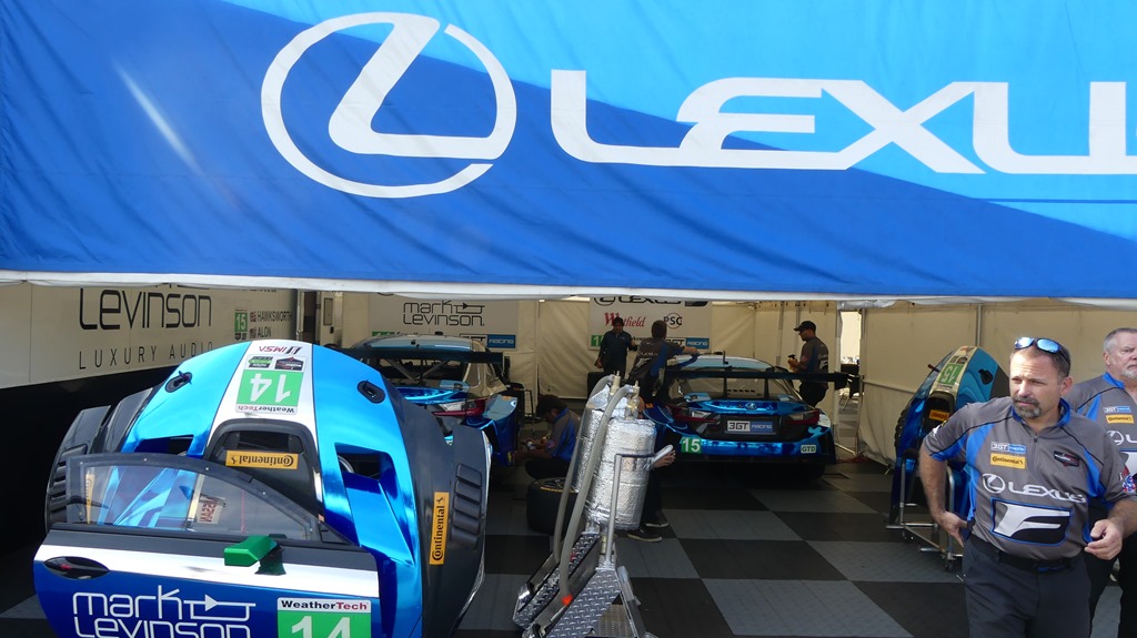 The Lexus team had two cars that were featured in their garage area.