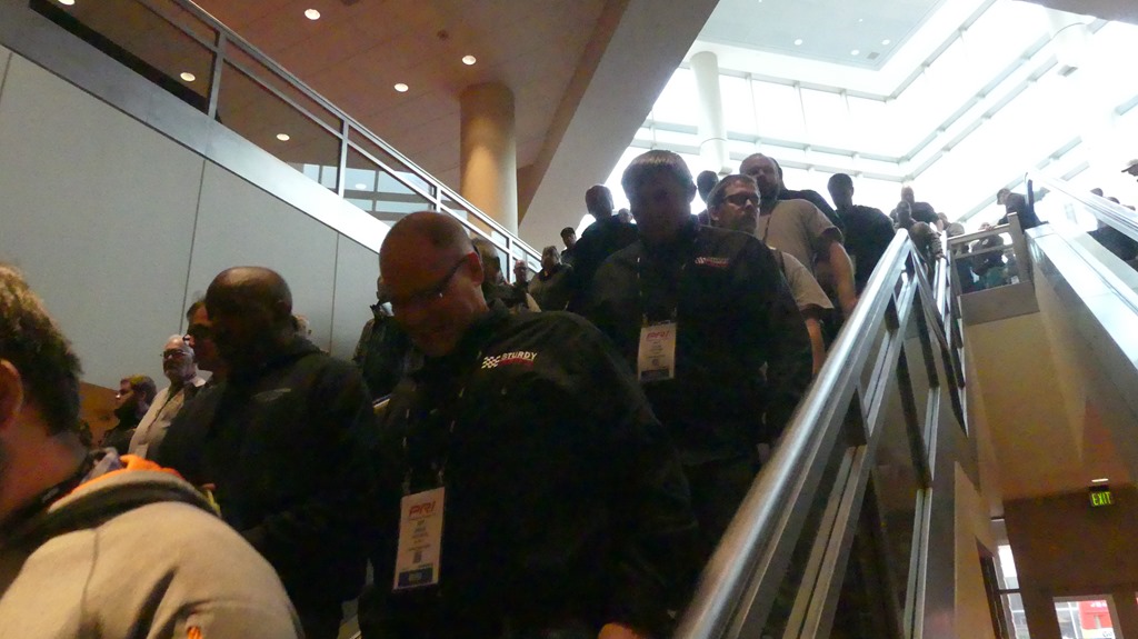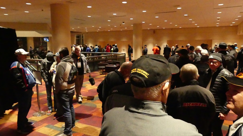 It wrapped around several times, but soon we saw movement and then we were inside with the crowd of our brethren of the racing industry.