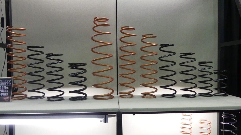These go in place of the plastic bump stops that generally get over compressed with springs that are far more resilient and predictable. Swift also had their usual vast catalog of springs that work for stock replacement as well as for many coil-over applications.