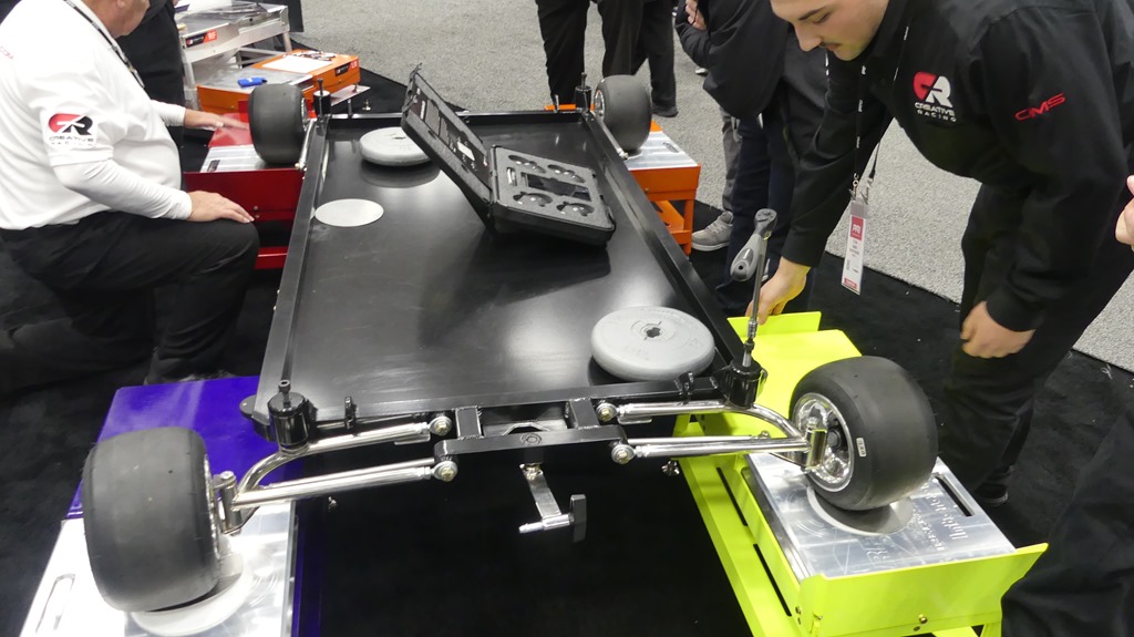 We stopped by Creative Racing’s display of equipment that makes it easy to perform corner balancing of your car.
