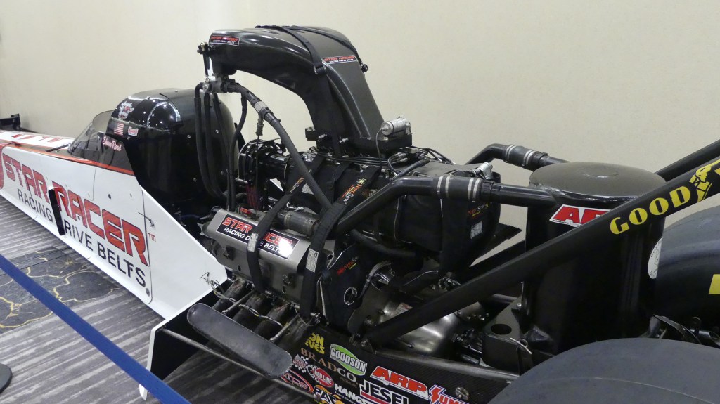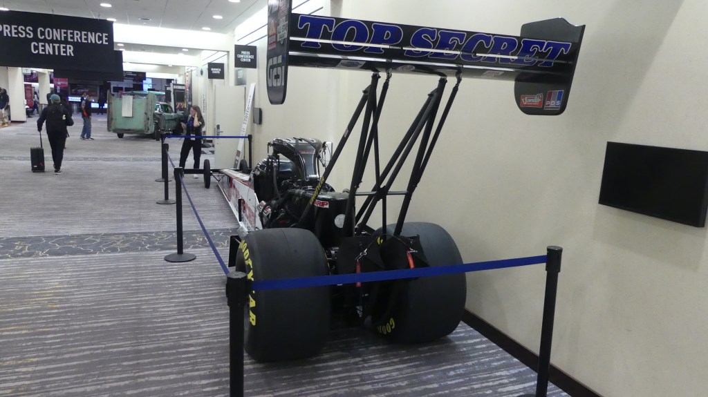 From there we went back downstairs to the huge show and exposition area. It would be about an hour before the exhibition floor would be open, so we spent some time browsing the hallways checking out the cars there. This year there was an emphasis on drag cars, which is a great way to get involved with racing. In these photos is a fine example of the top echelon of the sport.