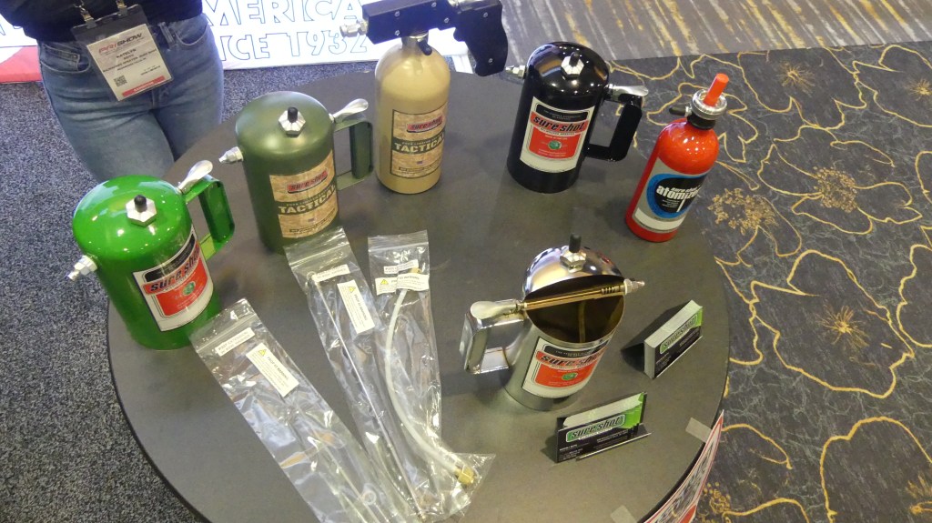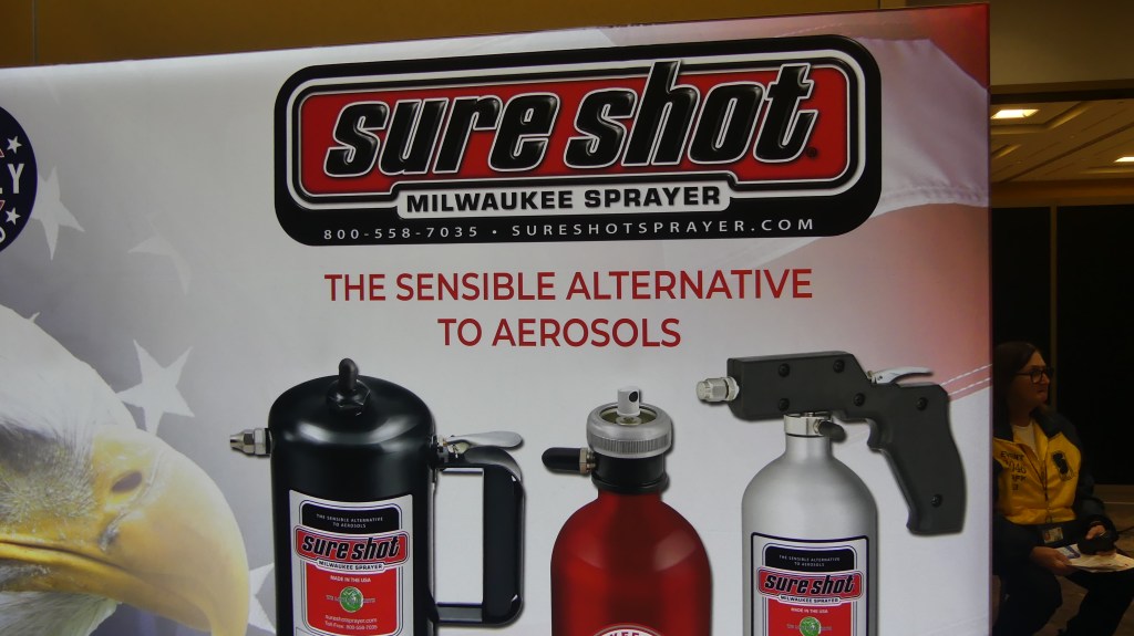 Another stop was at the Shure Shot booth of Milwaukee Sprayer (sureshotsprayer.com). Many shops have transitioned from rattle can sprayers that are disposed of once the product is empty to these refillable sprayers.