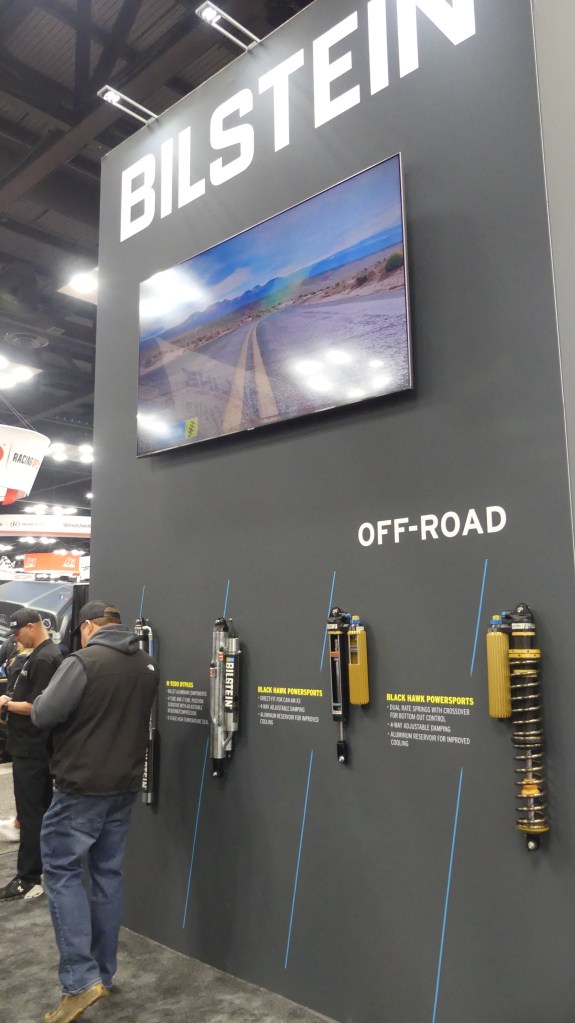 WE always like to stop by the Bilstein display to not only connect with their exceptional factory shock solutions, but see how much their solutions have expanded in the area of suspensions of many kinds.