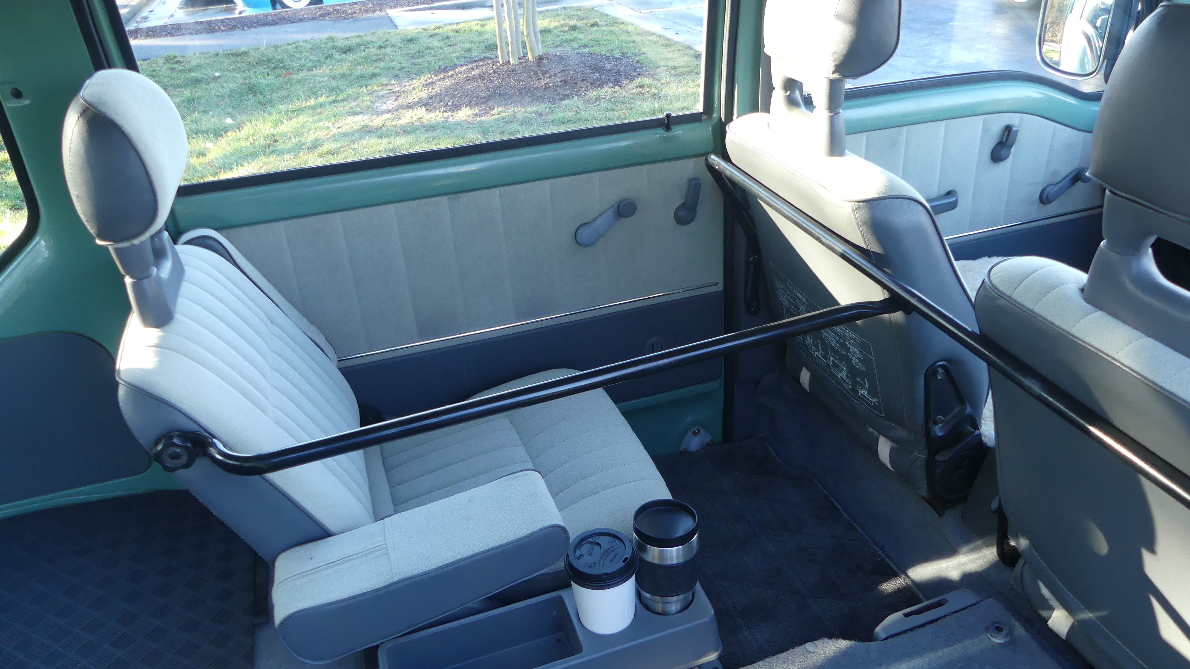 Under that engine cover between the front seats is a factory 240 cubic inch six cylinder putting out 150 horsepower. As well as a factory optional C4 transmission, and a 9″ differential with a 3.00 ratio. Along with the factory optional slide-out step. All these (and more) made it an Econoline Sport Van that originated in California.