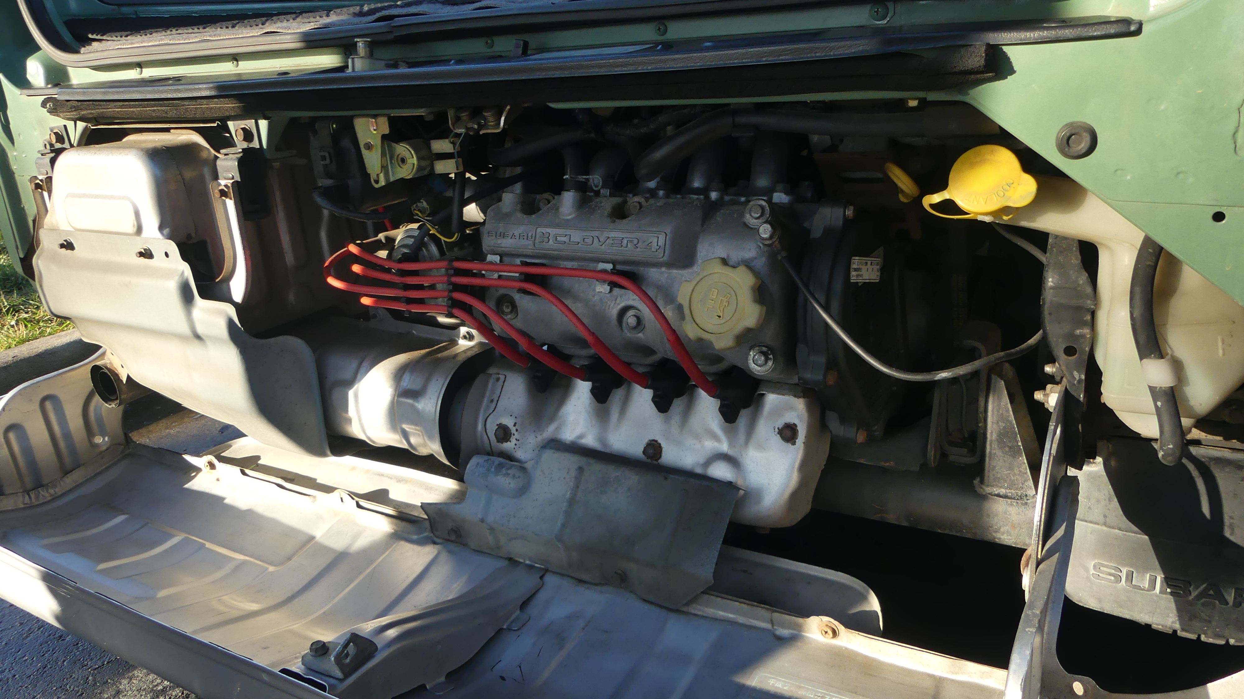 The engine in this Kei is water cooled and is easy to get to get access to.